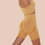 Hit up the gym with this Yellow Seamless Thigh Length Athletic Suit Fashion Style.